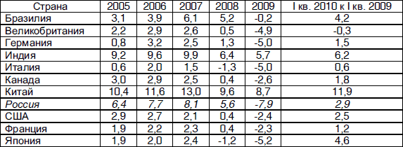 Таблица 2.2. Динамика ВВП ведущих стран мира, % (по данным Росстата)