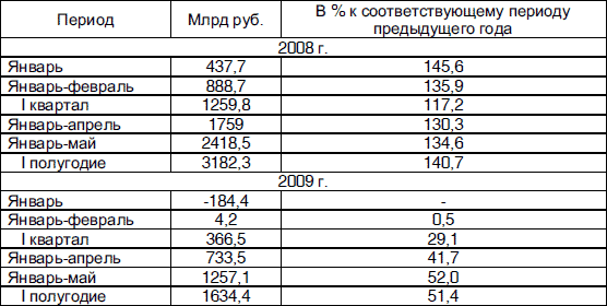 Таким образом, особенно болезненным для России был 2009 год, а именно – его первая половина. Как свидетельствуют данные Росстата (табл. 2.3), в I полугодии 2009 г. сальдированный финансовый результат (прибыль минус убыток) организаций (без субъектов малого предпринимательства, банков, страховых и бюджетных организаций) в действующих ценах составил +1634,4 млрд рублей, или +50,7 млрд долларов США, что значительно меньше, чем в аналогичном периоде прошлого года. В I полугодии 2008 г. эти показатели составляли, соответственно, +3182,3 млрд рублей и +133,8 млрд долларов США. За I полугодие 2009 года 42,9 тыс. организаций получили прибыль в размере 2442,6 млрд рублей, а 23,6 тыс. организаций – убыток на сумму 808,2 млрд рублей. Налицо тенденция к снижению прибыльности предпринимательских структур в 2009 году. Это подтверждается и тем фактом, что в I полугодии 2009 г. доля убыточных организаций по сравнению с 2008 г. возросла в РФ на 6,1 % и составила 35,5 %.