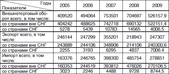 Таблица 1. Внешнеторговый оборот Забайкальского края, долл. СШАИз приведенных в таблице показателей можно сделать вывод, что самая большая доля внешнеторгового оборота Забайкальского края приходится на внешнеэкономические отношения со странами вне СНГ, а конкретнее с КНР и Монголией. Общий объем внешнеторгового оборота с 2005 года рос и достиг своего пика в 2007 году. Но с 2007 года происходит резкий его спад, что совпадает с началом развития кризиса.