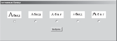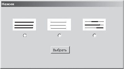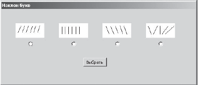 При нажатии кнопки выбора открывается дополнительное окно, в котором в виде пиктограмм представлены признаки данной группы. С помощью селективной кнопки можно выбрать один из них или ни одного.