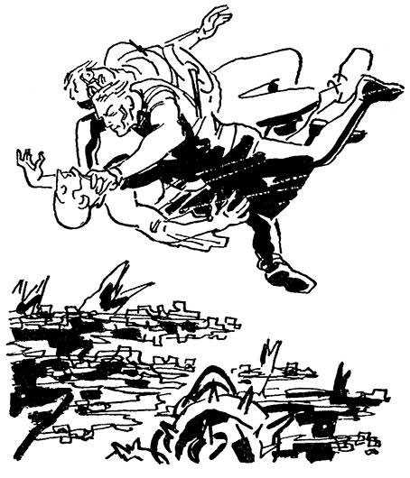минуту все было кончено. Тогда я отцепил с груди мертвого Люга антигравитационный диск, едва не вырвавшийся из рук, и тело грианина камнем полетело вниз.С трудом прикрепив аппарат Люга, я освободил ремень, связывавший меня с академиком, уравнял скорости обоих дисков и взял Петра Михайловича за руку.