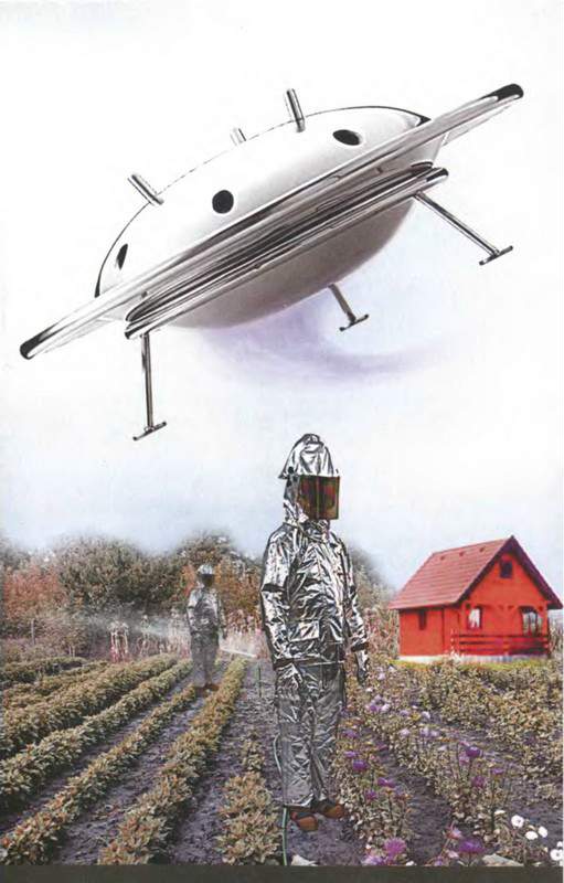 Солнце вовсю припекало, стояло спокойное летнее утро, пока на дорожке сада вдруг не заплясали лучи и блики явно искусственного происхождения и не раздался странный свист. В десяти метрах над землей зависла, вращаясь, летающая тарелка из ослепительно сверкавшего металла.