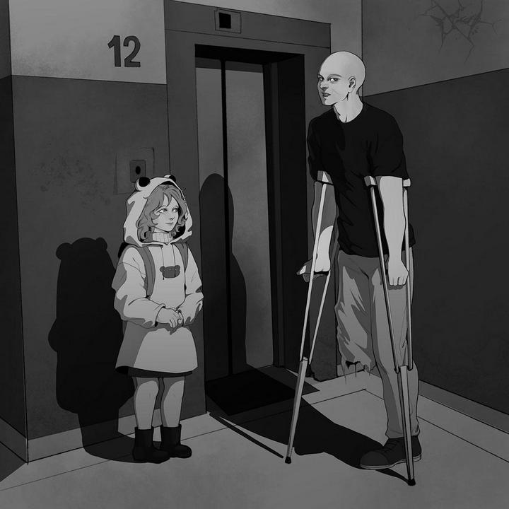 Маус выдохнул, хватаясь за перила и костыль, набрал воздуха и двинулся вниз, отдыхая около нарисованных на стенах цифр этажей. Один раз чуть не упал, живот противно и со свистом ухнул вниз от страха.