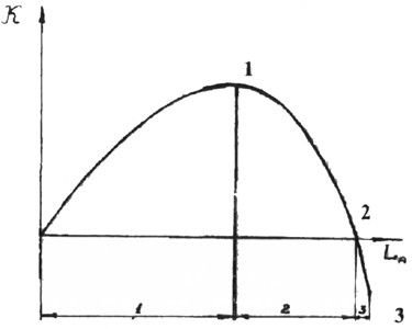Как видно из рисунка, Кеца с увеличением количества выпитого L сначала растет (участок 0-1), затем, после достижения некоторого максимума (точка 1) снижается (участок 1-2), что обусловлено последующим похмельным синдромом и рвотными рефлексами, сигнализирующими об отравлении организма. Дальнейшее поглощение алкоголя может даже привести к летальному исходу (участок 2-3).