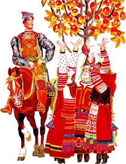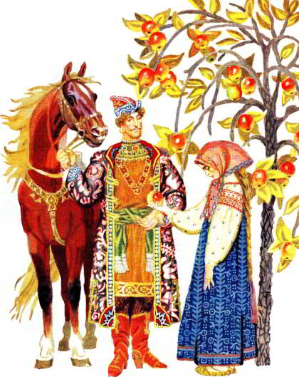 — Девицы-красавицы, которая из вас мне яблочко поднесёт, та за меня замуж пойдёт.