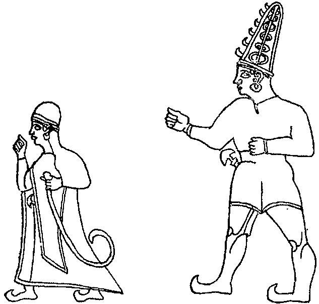 Рис. 41. Царь Тудхалия (слева) и бог Шаррума (справа). Язылыкая