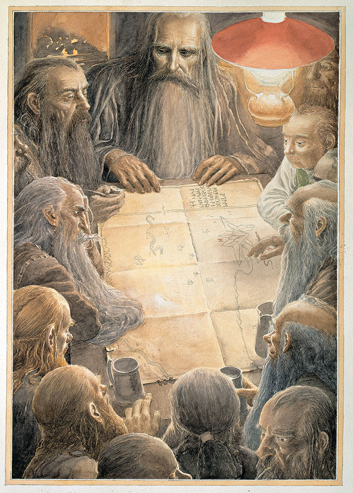 – Гэндальф, гномы и господин Торбинс! Мы собрались в доме нашего хорошего друга и соратника, весьма выдающегося во всех отношениях и неустрашимого хоббита – да не выпадет никогда шерсть на его стопах! Да славятся его вино и эль! – Он перевел дух, видимо, ожидая от Бильбо слов благодарности, но эти сомнительные любезности совершенно лишили хоббита дара речи. Тщетно прождав некоторое время, Торин продолжил: – Мы встретились, дабы обсудить наши намерения и решить, каковы будут наши дальнейшие действия. Уже скоро, еще до наступления дня, нам предстоит отправиться в долгий путь. Весьма вероятно, из этого путешествия некоторые из нас могут вовсе не вернуться; некоторые – или даже все мы, кроме, разумеется, нашего старинного друга и советчика, искусного чародея Гэндальфа. Цель наша, полагаю, хорошо всем известна. Но для досточтимого господина Торбинса и для молодых гномов – скажем,