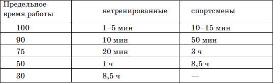 Рис. 29. Предельная продолжительность физических нагрузок в зависимости от интенсивности