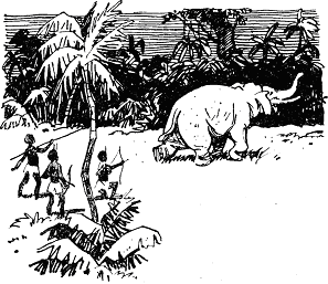 Це було дуже цікаве видовище, але мені стало страшно. Краще зустрітися з велетнями, ніж з цими страшними для мене карликами. Мабуть, я віддав би перевагу зустрічі з білою людиною. Пігмеї, незважаючи на свій низенький зріст, — найстрашніші вороги слонів. Я знав це ще до того, як став слоном. Вони чудові стрільці з лука і метальники списів. Вони застосовують отруйні стріли, одного уколу яких досить, щоб убити слона. Пігмеї можуть тихенько підкрастись до слона ззаду і накинути на задні ноги пута або ж перерізати гострим ножем ахіллесову жилу. Кругом своїх поселень вони розкидають отруєні колючки й палички…