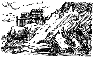 Я ще ніколи не бачив, щоб хто-небудь виходив звідти. Моя цікавість була такою великою, що я, признатись, пробував заглянути на подвір’я таємничого житла з високих скель. Але дача була так розташована, що звідки б я не заходив, я міг бачити тільки невеликий куток двору. Цей куток теж був голий і необроблений, як і навколишня місцевість.