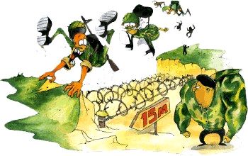 День 14. Пришел командир подразделения. Просил составить график самоволок. Потому что детекторы масс, тепла и прочих сущностей не рассчитаны на ниндзю. Впрочем, сержант нас быстро обломил, сказав, что эти детекторы больше предназначены для отстрела голубей, а не для того, чтобы поймать немного грамотного диверсанта. Потом, правда, смягчился и пробурчал: «Пусть мальчики погуляют», но пообещал поставить сюрпризы-ловушки и собственноручно выпороть того, кто в них сдуру попадется.