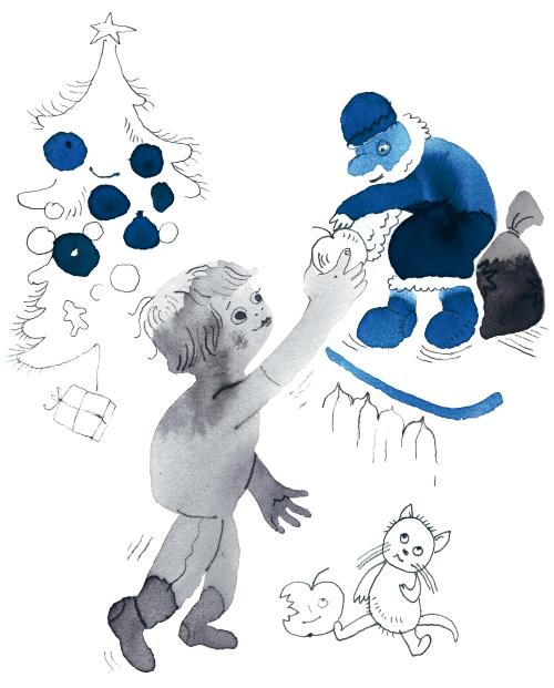 С Дедом Морозом, который сидит на подлокотнике дивана, у Андрэ, конечно, особые отношения. Он его побаивается. Дед Мороз большой и какой-то нестойкий. Судьбой ему предначертано на чем-то именно сидеть, а не стоять под елкой, но сидит он непрочно, и поэтому Андреич всякий раз, проходя мимо, норовит его поддеть так, чтобы тот наверняка с грохотом свалился, а не просто зашатался. При этом Андреич вроде и ни при чем. Он не хочет, чтобы было очевидно: это он роняет Деда. Потому что Дед, повторяю, вообще-то с виду грозен. И Андреич, например, не воспринимает его как игрушку. А так – шел, задел… Если что, а я-то что сразу?