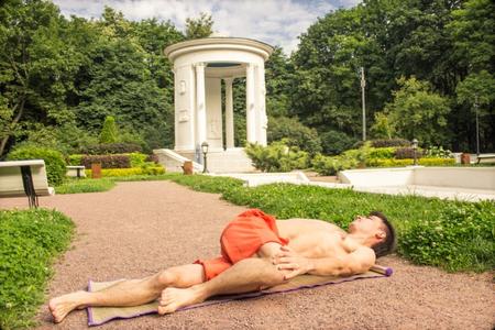 Лежа на спине, тянитесь ногами в одну сторону, руками в другую. Замрите в этом положении на 40–60 секунд. Если есть желание, подержитесь подольше. Постарайтесь расслабиться и насладиться растяжкой.