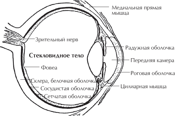 В норме глаз имеет почти сферическую форму, его оболочка состоит из трех слоев: