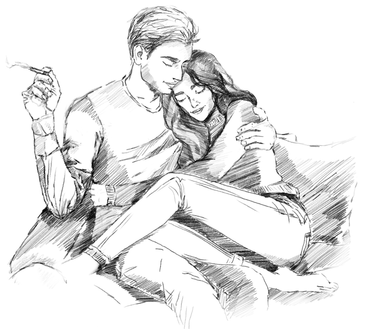 Она обнимала его и реки тепла разливались у неё по венам. Саша курил, шумно выпуская из лёгких дым, пальцы его левой руки утонули в кудрях Таты, а она, вдыхая этот запах, просто жила свою самую счастливую жизнь.
