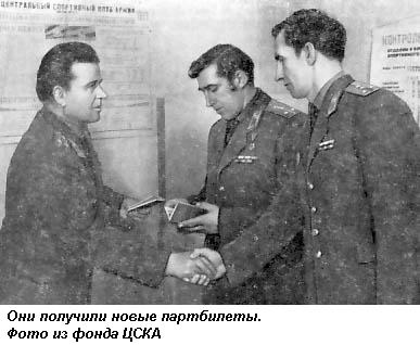 Известно, что нравственный облик человека складывается под влиянием многих факторов, но самый большой отпечаток на него накладывает коллектив, в котором человек живет и трудится. О силе хоккейного коллектива ЦСКА говорилось выше. Здесь же хотелось бы отметить следующее обстоятельство: одним из решающих условий его прочности является то, что в составе команды вот уже более десяти лет выступают только коммунисты и комсомольцы. Партийно-комсомольская группа активно помогает начальнику и старшему тренеру в организации и проведении тренировок, в укреплении дисциплины и дружбы в коллективе, в повышении сознательности спортсменов.