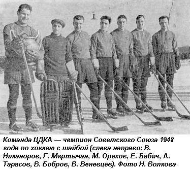 Многие игроки из новичков превратились в зрелых мастеров, в истинных виртуозов хоккея. Состязания хоккеистов все больше и больше вызывали восхищение зрителей. Особыми симпатиями болельщиков пользовались армейские спортсмены В. Бобров, Е. Бабич, А. Тарасов, В. Никаноров, Г. Мкртычан.