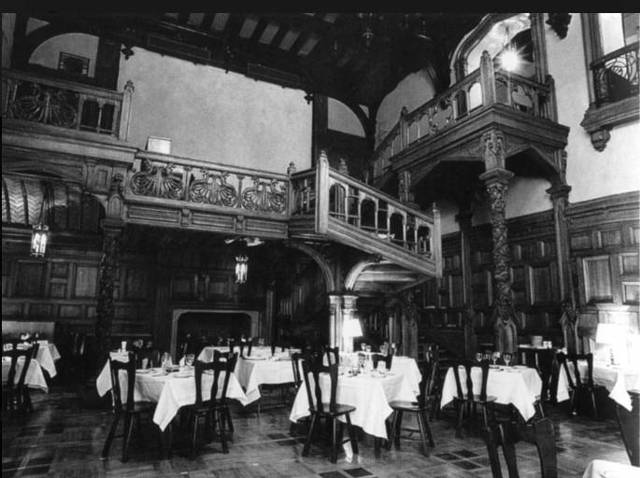 А уж что говорить о главном зале ресторана дома Литераторов — Дубовом. Стены здесь отделаны массивными панелями резного дерева, вдоль одной из них тянется резная лестница на второй этаж, а рядом с ней красуется самый настоящий камин, не горящий по причине жаркой погоды.