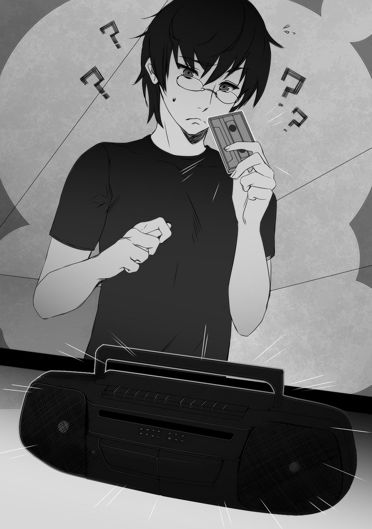 Была в комнате еще одна вещь, и вот она привлекла мое внимание. На том же столе стоял прямоугольный предмет черного цвета немногим более полуметра в длину и сантиметров двадцать в высоту. На лицевой части по бокам располагалось что-то вроде динамиков, а в центре две зоны, внутри которых была пустота. Над ними была шкала с цифрами. На верней части я заметил складную ручку, антенну и ряд кнопок. Повертев эту вещь, я увидел еще несколько крутящихся плоских элементов, которые находились на разных сторонах вещи. Рядом обнаружилась небольшая полка, на которой стояли небольшие пластмассовые коробки с надписями и рисунками. Внутри оказались странные предметы из той же пластмассы с двумя отверстиями в середине и пленкой внутри.