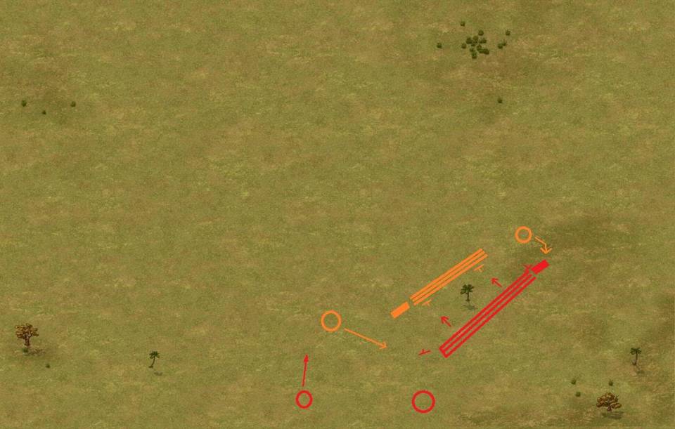 Затем я обратил внимание на правый фланг, который у нас выдавался за пределы вражеского. Надо было загибать.