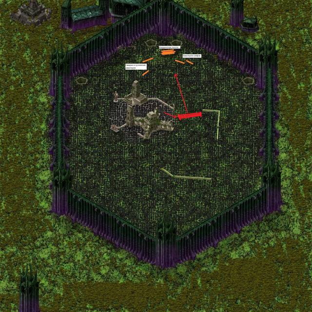 Шаддинская пехота находилась в северной части карты, около двух исполинских жертвенных ям. На западе от них у стены арены лежали кости гигантских чудовищ, поросшие буйной зеленью. Кавалерия шаддинцев была на выдающихся вперед флангах. Западный занимали саварн и сулимские конные лучники, восток — сэйфы.