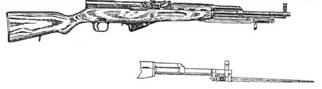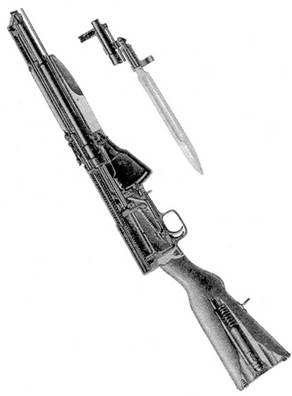 Краткая характеристика: вес без патронов и без штыка – 3,8 кг; со штыком – 4,3 кг; длина без штыка – 1226 мм; со штыком – 1463 мм; начальная скорость пули – 830 м/с; емкость магазина – 10 патронов; праетическая скорострельность – 20-25 выстрелов в минуту.