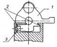Конструкция крепления передней части накладок СВД: I – накладки 2 – сальник (передний упор накладок) 3 – верхнее кольцо