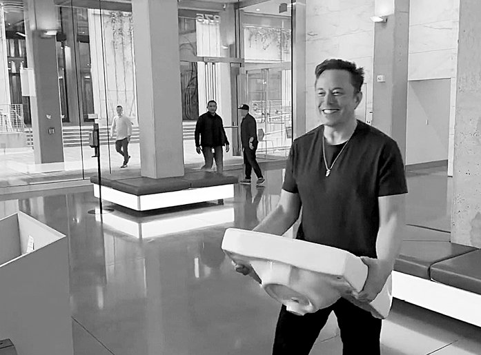 Шутка Маска основана на словесном каламбуре: английская фраза let that sink in значит “свыкнитесь с этим”, “обдумайте это”, “прикиньте”, но буквально ее можно перевести как “впустите ту раковину внутрь”. В своем твите Маск написал: “Вхожу в штаб-квартиру Twitter – прикиньте!” – и опубликовал видео, в котором вносит в офис Twitter раковину.