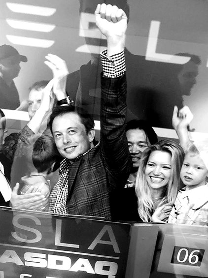 Через месяц после покупки завода Маск смог вывести компанию на IPO, и Tesla первым из американских автопроизводителей со времен Ford в 1956 году стала открытым акционерным обществом. Маск с Талулой и двумя сыновьями прилетел в Нью-Йорк, чтобы позвонить в колокольчик на Таймс-сквер, возвестив об открытии торгов на бирже NASDAQ. К концу дня фондовый рынок обрушился, но акции Tesla выросли более чем на 40 %, обеспечив компании финансирование в объеме 266 млн долларов. Тем вечером Маск вернулся на завод во Фримонте на Западном побережье и поднял лаконичный тост. “В жопу нефть”, – сказал он. В конце 2008-го Tesla чуть не умерла. Теперь, всего полтора года спустя, она стала самой востребованной из новых компаний Америки.