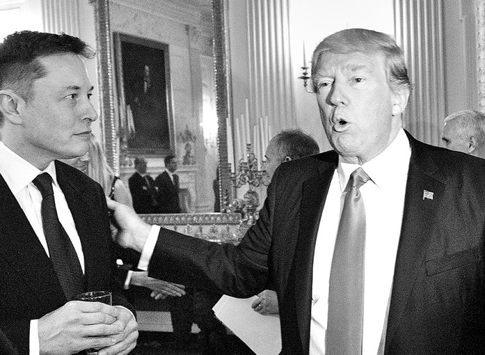 Но после победы Трампа у Маска зародилась робкая надежда, что новый президент станет управлять страной как независимый нонконформист, а не как обиженный реакционер. “Я подумал, что в ходе кампании он сумасбродствовал на камеру, но в итоге, возможно, займет более разумную позицию”, – поясняет он. В результате по настоянию своего друга Питера Тиля, который поддерживал Трампа, Маск согласился принять участие во встрече директоров технологических компаний с вновь избранным президентом, состоявшейся в Нью-Йорке в декабре 2016 года.