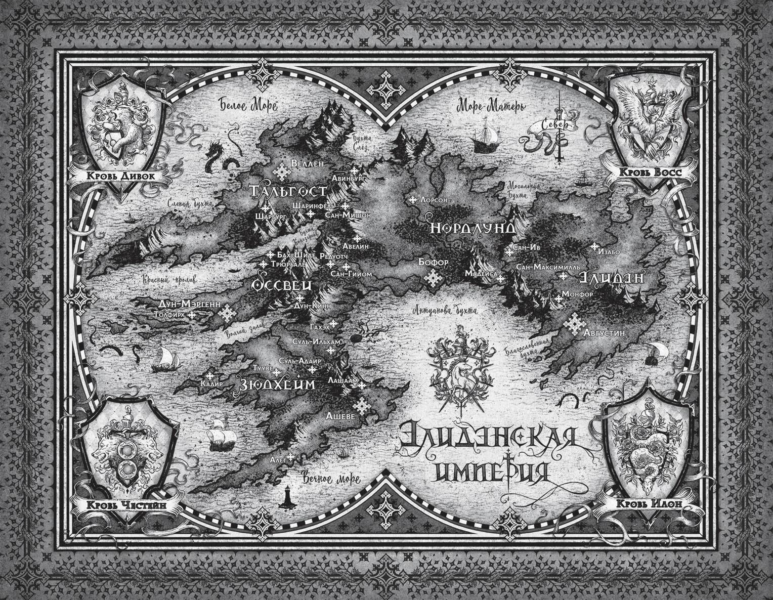 Габриэль де Леон – последний угодник-среброносец, Черный Лев Лорсона и предполагаемый герой этой истории. Детство Габриэля, родившегося за девять лет до наступления мертводня, когда с неба над империей Элидэн исчезло солнце, было коротким и жестоким. Он – бледнокровка, рожденный смертной матерью от вампира, наследник силы и жажды своего отца. В пятнадцать лет Габриэля приняли в Серебряный Орден Святой Мишон (Ордо Аржен), и он стал настоящим героем, мастером меча и поборником этого святого братства, а потом впал в немилость.