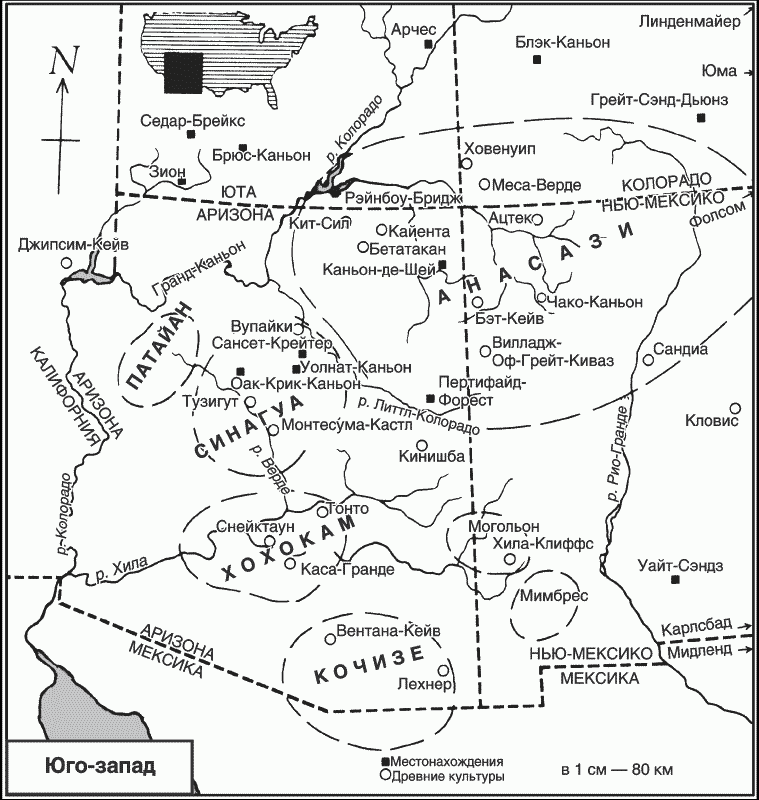 Так оно и стоит многие годы под солнцем и ветрами; тем не менее четыре этажа по-прежнему сохранились, а стены имеют 1,2 м в ширину. В древние времена это здание являлось, очевидно, своего рода «квартирным» домом. Люди культуры хохокам были не только терпимы к представителям других культур, они содействовали образованию новых культур, связанных с занятием сельским хозяйством. Поскольку, вероятно, основной центр проживания людей этой культуры, сосредоточенный на берегах Хилы и Солта, оказался перенаселен, часть людей ушла на север, где сформировались родственные культуры патайан и синагуа; другие – на восток, где возникли культуры могольон и мимбрес. И сегодня прямые потомки людей культуры хохокам – индейцы пима, папаго, марикопа, йавапаи и хавасупаи – продолжают заниматься сельским хозяйством, как и их далекие предки.