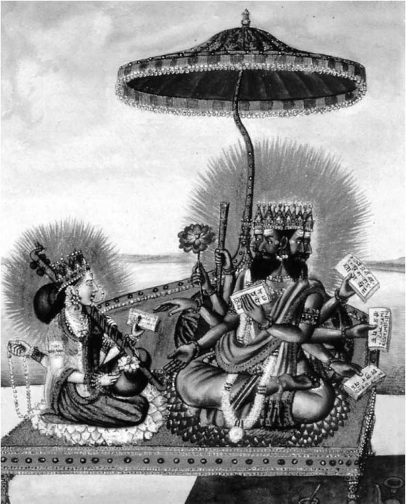 Поклонение Брахме. Индийская миниатюра.