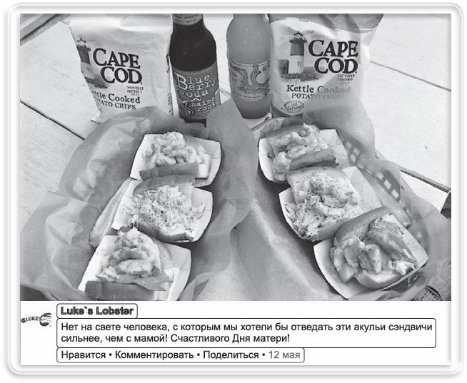 Я обожаю это место. Только моя жена Лиззи знает насколько сильно: однажды мы ели там четыре дня подряд. В своем сообщении компания Luke's Lobster отлично поработала с текстом. Но поскольку ее хроника заполнена изображениями лобстеров практически 365 дней в году, было бы здорово, если бы на День матери они показали что-то более тематическое. Это упущенная возможность.