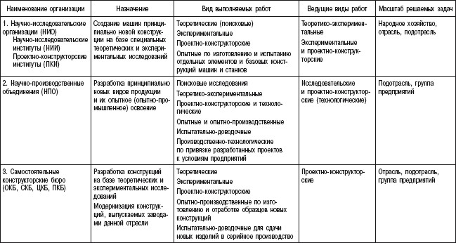Эти сложившиеся организационные формы инновационных разработок отличаются по назначению, масштабу решаемых задач, отдельным выполняемым видам работ и их ведущим направлениям (табл. 3.1). Такое разделение не означает создания одних видов изделий в НИИ, других – в ОКБ, третьих – в ОГК. Здесь существует множество разновидностей форм, широкое разделение труда между ними. Так, в авиадвигателестроении новая конструкция двигателя разрабатывается в ОКБ, имеющем свою опытно-экспериментальную базу, могущую изготовить опытный образец и довести его, а СКО заводов работают только над непосредственным внедрением этих проектов в производство и частичным их совершенствованием. В станкостроительной и электротехнической промышленности инновации (новшества) разрабатываются в НИИ, СКБ и ОГК, т. е. функционируют все основные формы организации научно-технических разработок.