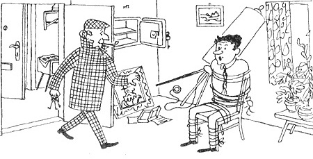 — Наконец-то вы пришли, инспектор, — с радостью в голосе проговорил Мюллер. — Скорее освободите меня. Мои силы уже на исходе. Какой-то негодяй ворвался сегодня ночью в мою квартиру, связал меня и похитил драгоценности жены. Хотя мы застрахованы, но хорошо бы, если бы вы нашли преступника раньше, чем об этой истории узнает моя жена. Она сейчас как раз в отъезде.