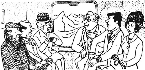 Не раз приходилось Варнике срочно выезжать по делам службы. Вот и сейчас, как видите, он находится в купе, где собралось весьма приятное общество. После того, как попутчики расположились и освоились, завязалась интересная, непринужденная беседа. Внезапно вагон погрузился в кромешную тьму. Поезд проходил через длинный туннель. Освещение в поезде почему-то не было включено. «Вот, наверное, влюбленные радуются!» — подумал Варнике. В купе было тихо. Все ждали, когда же, наконец, кончится туннель. Но вот — всеобщий вздох облегчения: за окнами поезда снова яркий солнечный свет. И вдруг сидящая у окна пожилая дама пронзительно закричала: «Моя брильянтовая брошь! Ее украли, когда мы проезжали туннель!»