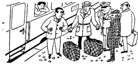 — Как вы смеете обвинять меня в воровстве! Посмотрите внимательнее, ведь наши чемоданы совершенно одинаковы, я просто их перепутал.