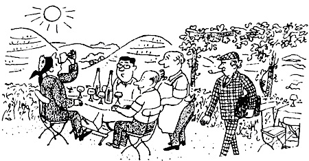 — Я не сомневаюсь, что смогу различить вина, — вдруг заявляет незнакомец, который уже давно подсел к их столику и внимательно прислушивался к разговору. — Пусть мне принесут из погреба бутылку вина другого сорта. Завяжите мне глаза, налейте бокал из вашей бутылки, а другой из той, что сейчас будет принесена, и я тотчас же определю, какое вино я пью.