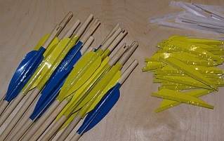 Но перейдем содержательной части раздела. Итак, мы имеем лук с тетивой, и несколько стрел - и что, мы можем идти и стрелять? Нет. Во-первых, надо подумать о средствах предохранения не от чего ни будь, а от сорвавшейся тетивы. Иногда, когда люди пользуются слишком сильными для себя луками, рука с луком поворачивается так, что когда вы отпускаете тетиву, та бьет по тыльной части локтя, причем бьет очень сильно - хороший лук может рассечь руку до крови. Чтобы избежать таких травм, особенно свойственных неопытным стрельцам, следует носить, как утверждали наши предки, щиток - наруч или кожаный наруч. Первый представляет собой костяной или железный щиток прямоугольной формы, согнутый по руке носителя. Такой щиток привязывается к защищаемой части руки при помощи шнурков или ремешков.