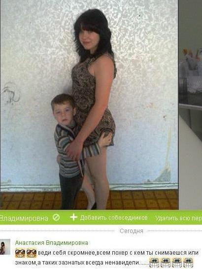 Рис. 3. На фото: будущая социальная курица Анастасия Владимировна, вместе со своим незаконно рожденным сыном. 23 года, украинское село Кукуево. + её пост мне в ЛС.