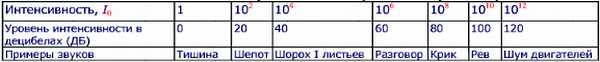 Уровень интенсивности 1 в децибелах (дБ) выражается формулой