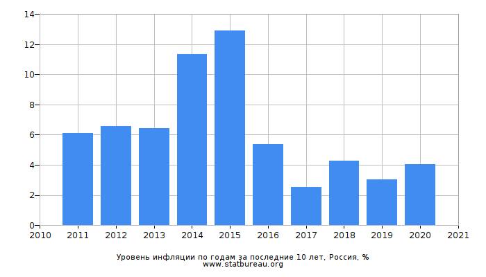 А вот для сравнения график инфляций рубля за те же 10 лет: