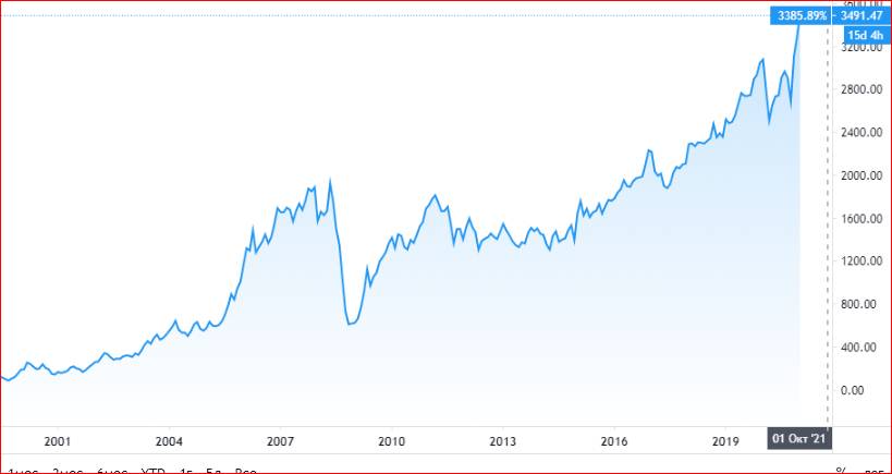 Индекс ММВБ вырос в 17 раз начиная с 2000 года. Конечно, это слишком высокий рост и долго он продолжаться не сможет. Помните, доходность в прошлом не гарантирует такую же доходность в будущем. Всему хорошему когда-нибудь приходит конец.