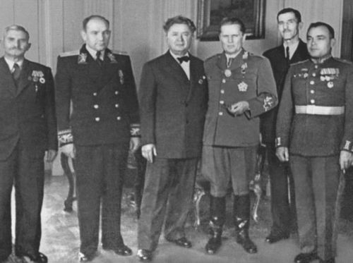 Награждение Тито советским орденом «Победа» в посольстве СССР в Югославии. Сентябрь 1945 г.