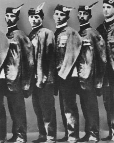 Иосип Броз (первый слева) в форме члена клуба «Соколы» 1911 г.