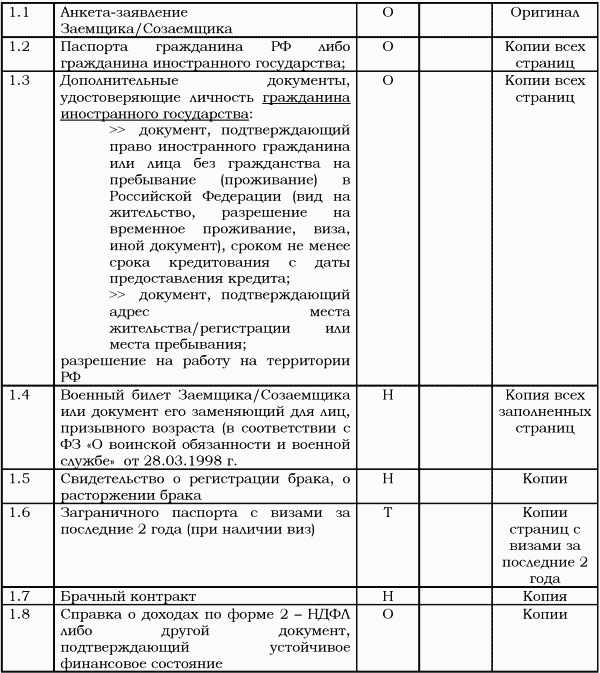 информации.Тип: О – обязательные к представлению; Н – предоставляются при наличии; Д – дополнительные документы; Т – по требованию Банка; НК – может быть предоставлена на сделку при условии соблюдения требований Банка