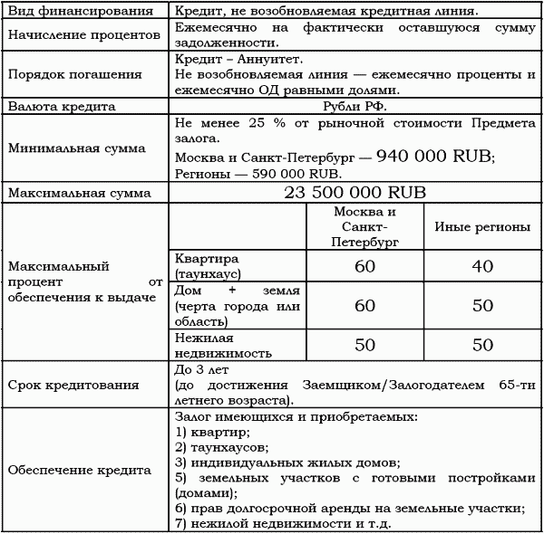 Возраст на момент подписания Кредитного договора и договора Залога не менее 18 лет. Срок окончания выплат по Кредиту должен заканчиваться до достижения Заемщиком и Залогодателем 65-ти летнего возраста, но может различаться в зависимости от Условий продукта.