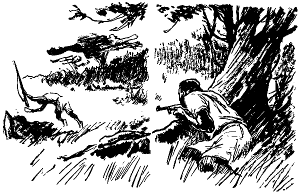 Неожиданно выстрелы прекратились, несколько секунд стояла тишина. На озерке уже не было слышно ни голосов, ни всплесков. Значит, оружие спрятано! Хосе сразу приободрился. Теперь уходить, и быстрее. Хосе вскочил на ноги, прячась за стволом. Он хотел окликнуть Зоао, и в этот момент сзади раздался шорох.
