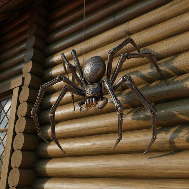 Митя вызов принял: прижался к земле, а потом резко оттолкнулся, придав себе настолько сильное ускорение, что к бане он фактически полетел, при этом лапы были направлены назад, а вынес он вперед только первые две, когда уже приближался к стене, чтобы в нее не врезаться. На стене он повис, зацепившись лезвиями, и повернулся корпусом ко мне, ожидая команды.